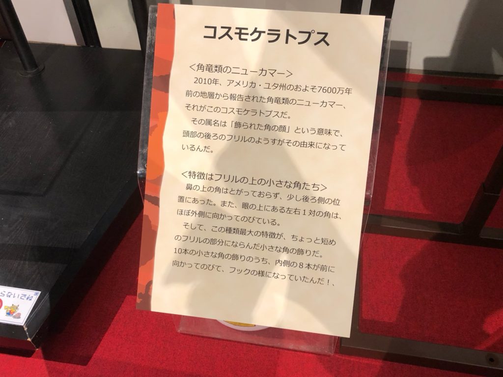 私はコスモケラトプスという角竜類をこの展示で初めて知りました。