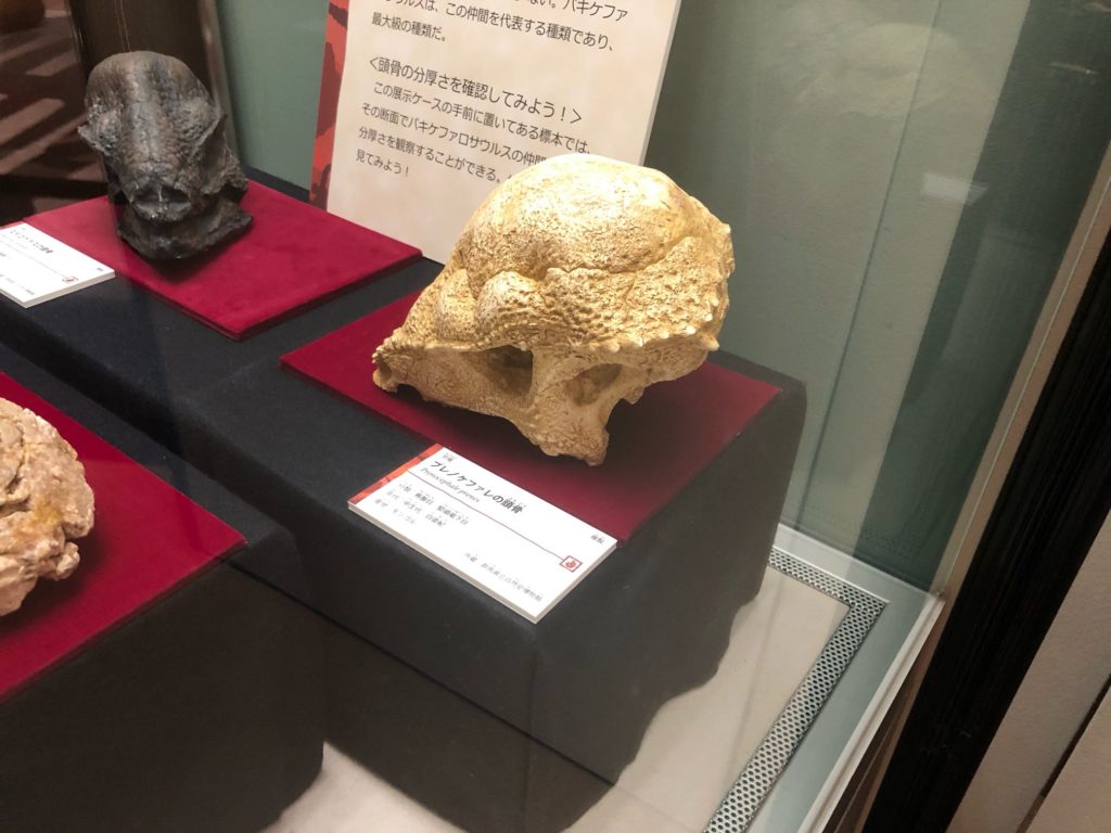 メジャーなパキケファロサウルスはポケモン化石博物館では初日から展示されていました。