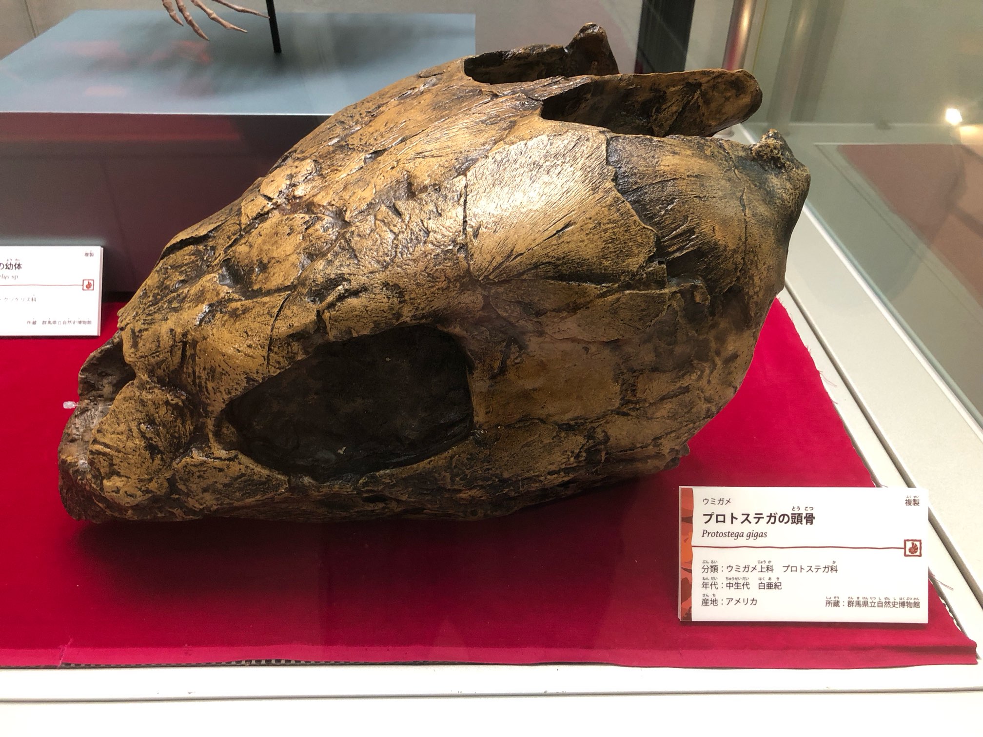 追加されたプロトステガの頭骨は前半期から展示されているものよりも大きなものになっています。