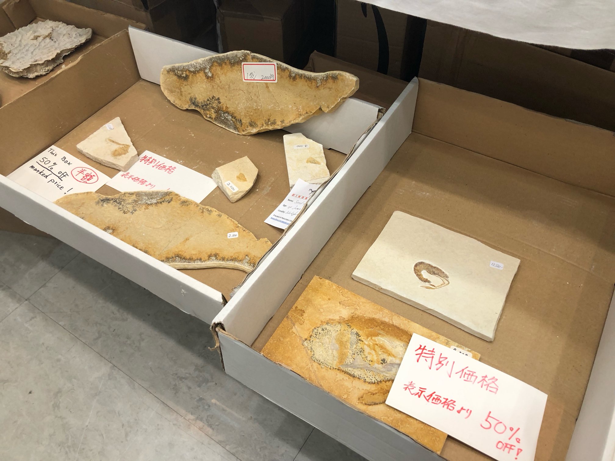 その中で良いなぁと思ったのが、「在庫処分大特価!!」と書かれた棚にあった化石。