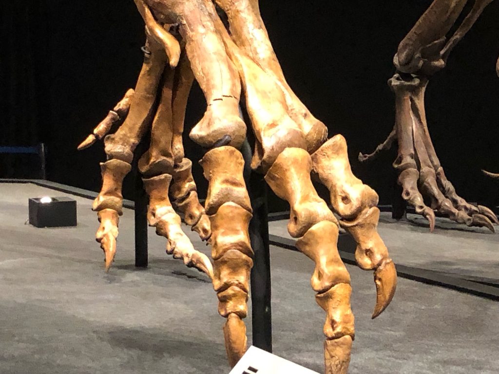 ティランノサウルスの捕食対象となっていた恐竜の展示で、同じく注目ポイントとなる中足骨を見せているのが工夫を感じます。