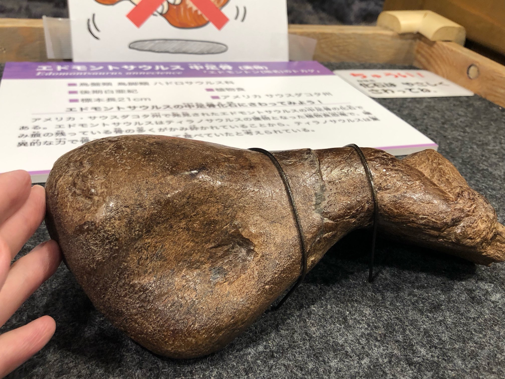 私としては限られたスペースでアリオラムスを中心として観てほしいであろう標本がじっくり観られたし、エドモントサウルスの化石にも触ることができたのがとても良い展示だったと思います。