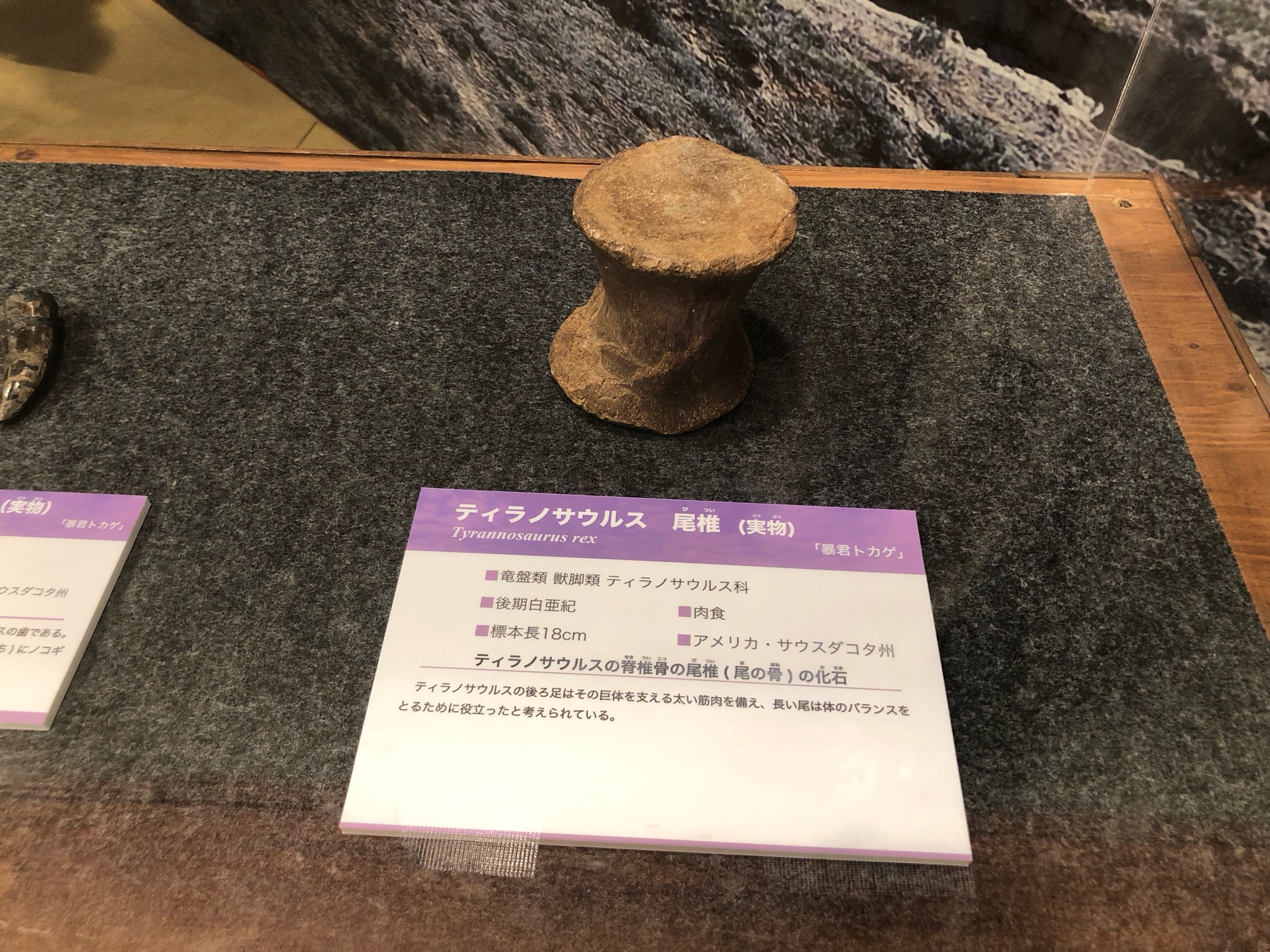 尾椎の実物化石をこのように単独で展示するのはなかなか見かけないような気がします。
