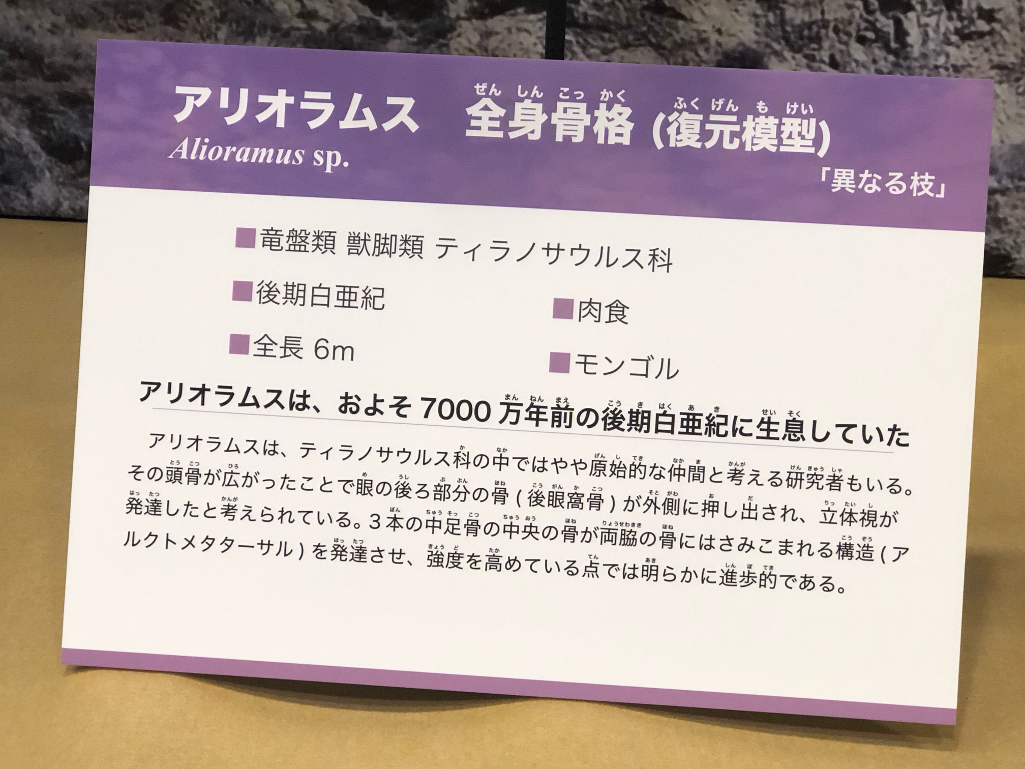 アリオラムスとティランノサウルスの違いを感じられる点でもかなり面白い展示でしたね。
