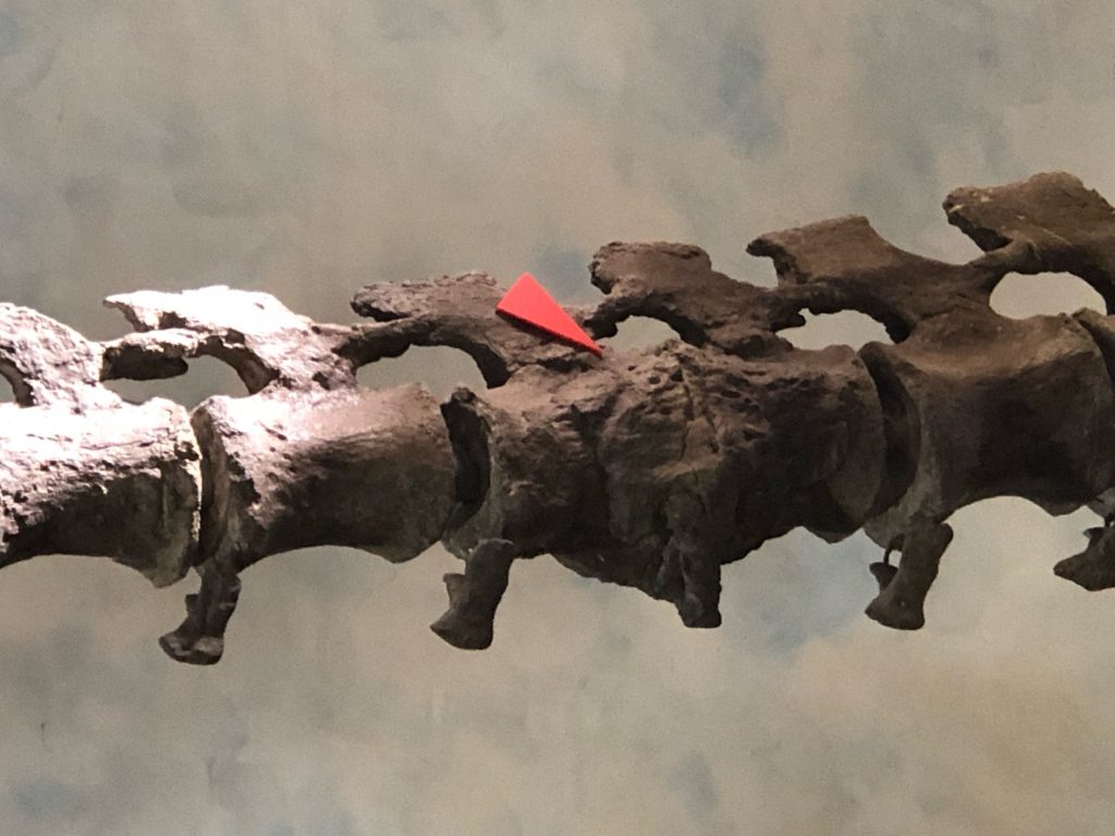 群馬県立自然史博物館のカマラサウルスも尾椎に病気の痕を観察できる個体ではありますが、レベチなほどに強烈な傷。