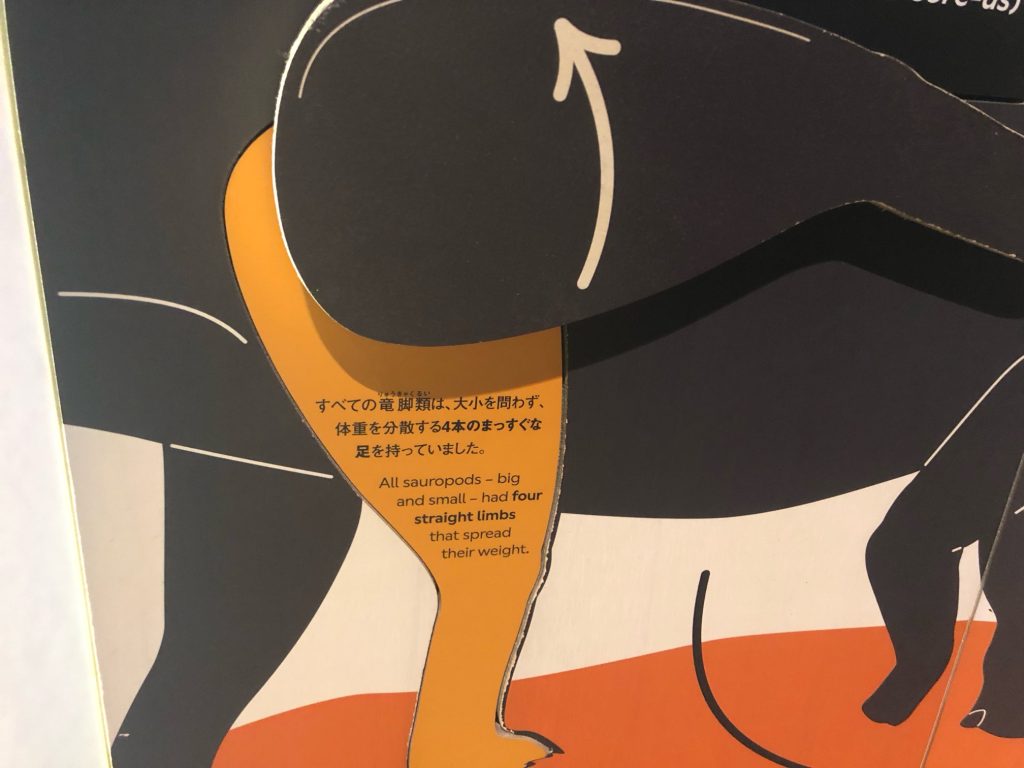 アフリカゾウと比較することでパタゴティタンの大腿骨の大きさを体感したり、カマラサウルスの脚を持ち上げて説明を読んだり。