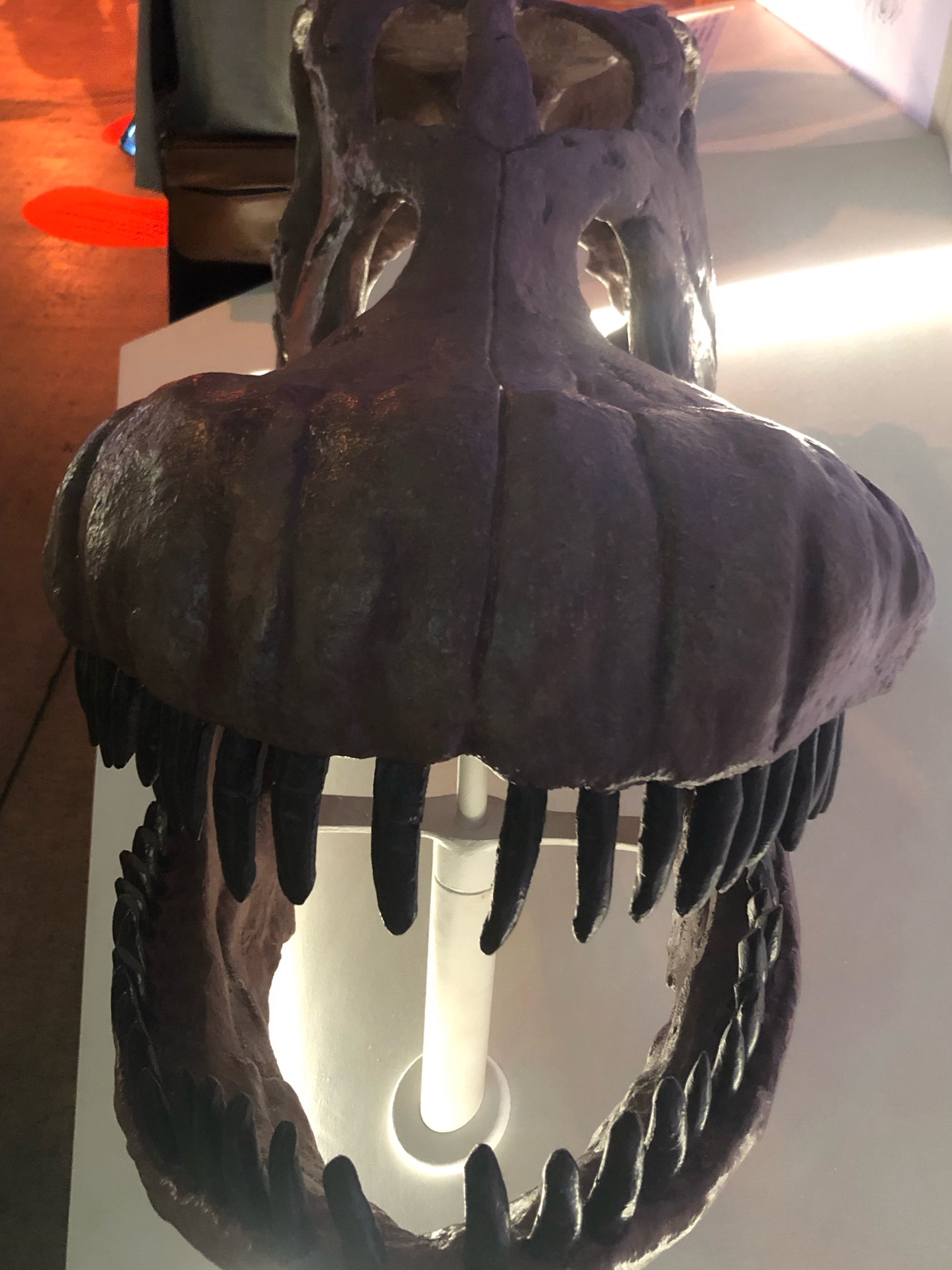 展示されている触れる頭骨は近縁種サルミエントサウルスに基づく模型だそうです。